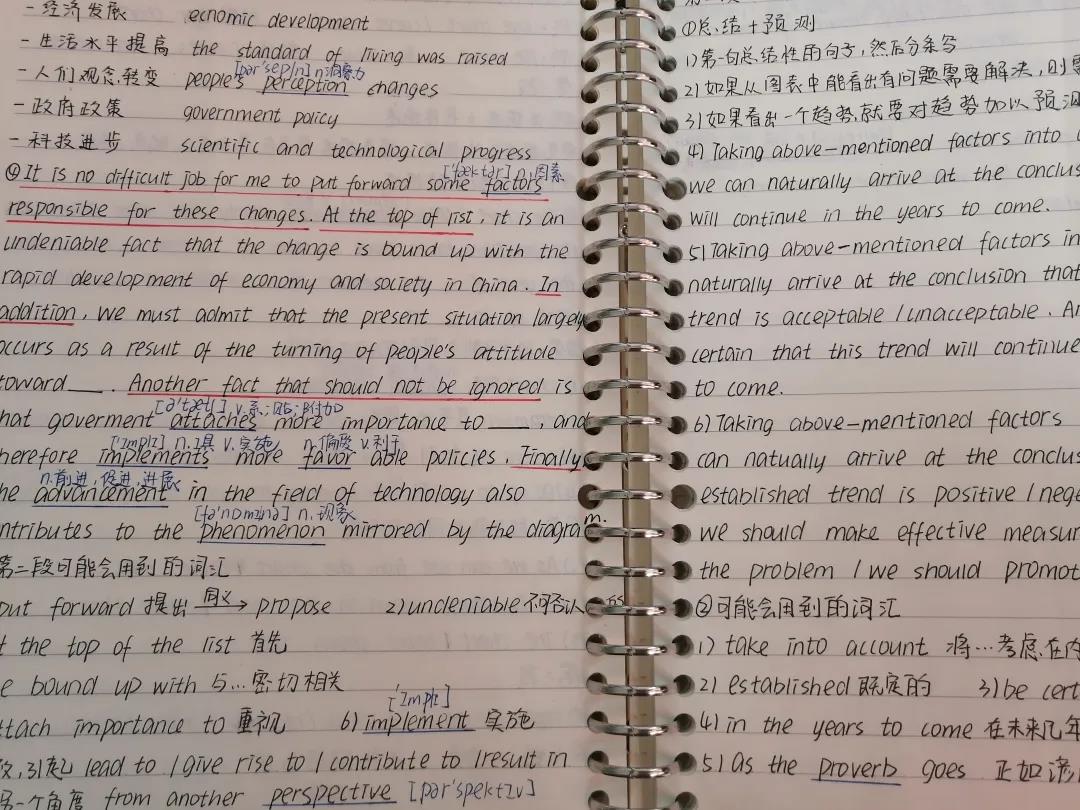最淡的墨水,也胜过最强的记忆。我一直保持着高中养成的好习惯,一张张笔记是我未来宝贵的财富,为我之后的复习也打下了基础。黑红两种颜色,虽然耗费了一些精力,但是学习内容分类简单明了,更能灵活运用。