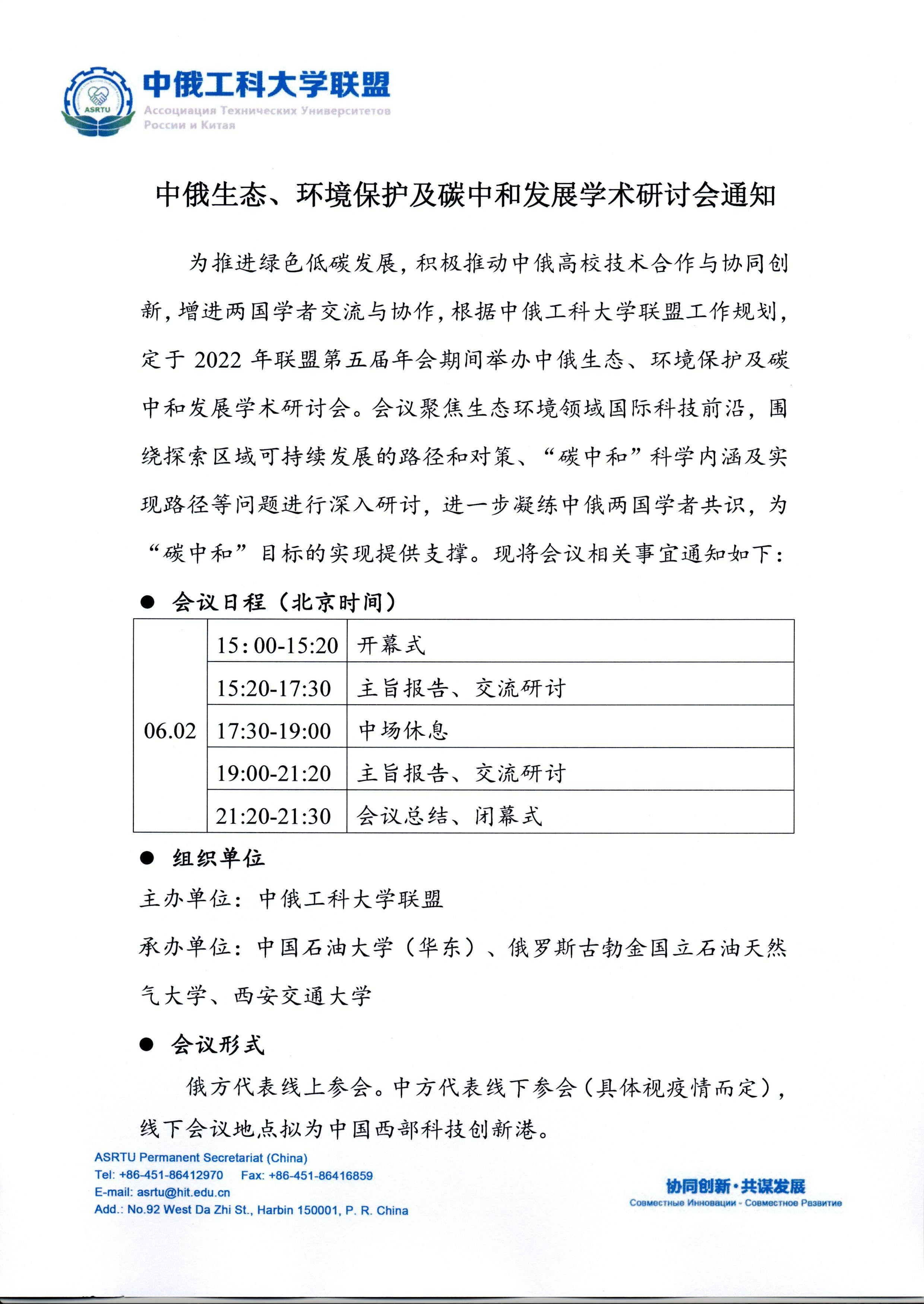中俄生态、环境保护碳中和发展学术研讨会通知