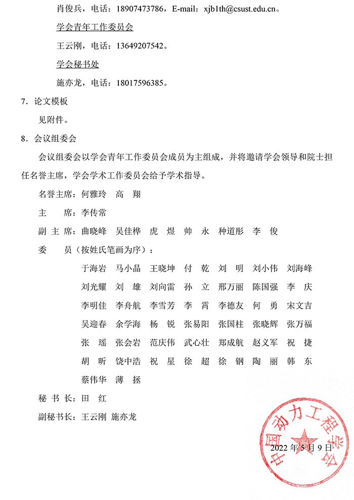 中国动力工程学会第九届青年学术年会征文通知(第二轮)