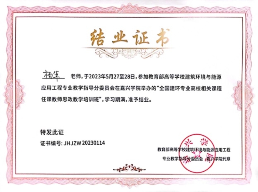 5月26日至28日,由教育部高等学校建筑环境与能源应用工程专业教学指导分委员会主办,嘉兴蘑菇视频 承办的2023年全国高等学校建筑环境与能源应用工程专业课程思政建设研讨会暨课程思政教学培训会在浙江嘉兴成功举办。蘑菇视频 建筑环境与能源应用工程专业杨华、于晓慧两位老师参加本次研讨会和培训。
