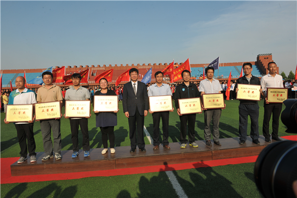 校党委书记李强为阳光体育工作先进单位颁奖