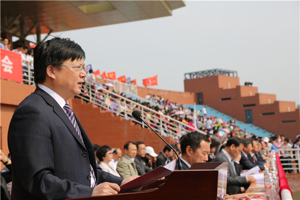 刘兵在在开幕词中回顾学校在过去一年来体育工作取得了新进展和新成绩。他希望参加本次运动会的全体运动员发扬“更高、更快、更强”的奥林匹克精神,争取运动成绩和精神文明的双丰收;希望全体裁判员能够做到“严肃、认真、公正、准确”,全体工作人员能够密切配合,把本届运动会办成一个安全、热烈、节俭、隆重的体育盛会。他希望师生以此次运动会为契机,养成体育运动的自觉,形成坚持锻炼的习惯,让身心健康成为一种追求、一种风尚,全面提高身心素质,以实际行动为学校高水平大学建设做出贡献!