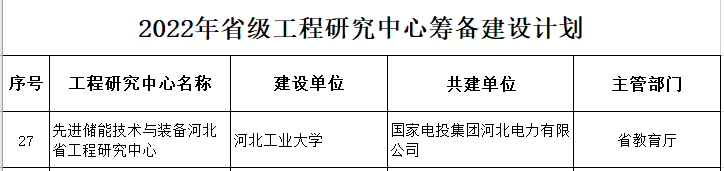 近日,根据河北省发展和改革委员会文件《河北省发展和改革委员会关于下达2022年省级工程研究中心筹备建设计划的通知》(冀发改高技[2023]102号),以蘑菇视频 为依托单位,与国家电投集团河北电力有限公司联合申报的“先进储能技术与装备河北省工程研究中心”获批建设。