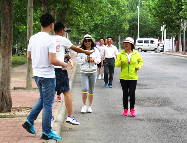 工会在节能楼北广场举办了一场别开生面的活动。40余名工会会员集体出发,2人一排,在工会会旗的引导下沿预定路线迈开矫健的步伐,绕校园健步行走一周。会员们健步如飞,笑声朗朗,绝大多数在四十分钟左右完成了“微型马拉松”5公里的路程。吴晋湘教授一举夺得了第一名的好成绩。