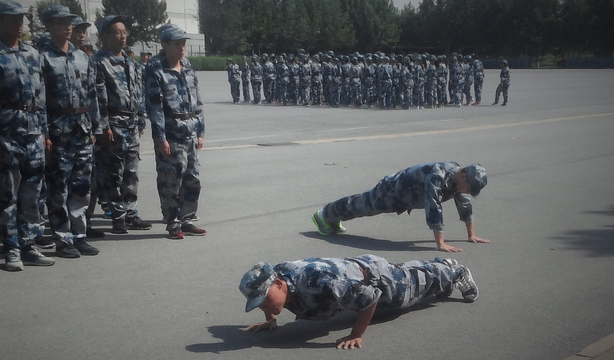 站军姿、练蹲起转体已让我们汗如雨下,太阳的暴晒让我们皮肤红痛,仅仅这些简单的内容,却也能让我们看到军人的作风。严肃认真,雷厉风行,有板有眼,不放过任何小细节。一个简单的军姿,从头到脚却有很多要求,我们从中看到军人的认真细致,并体会到了细节的重要性。正是这种苦、这种累磨练了我们的意志,为我们的人生上了一课。