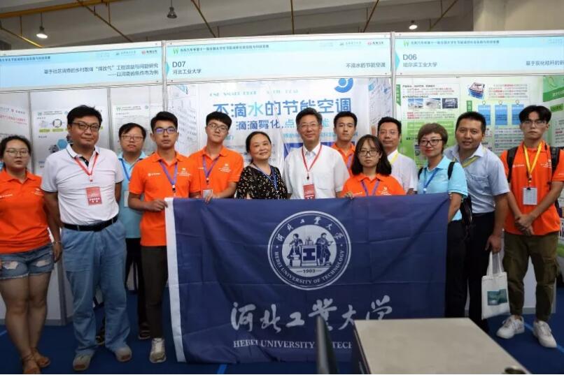 的2支团队脱颖而出晋级决赛,由杨华老师指导的《不滴水的节能空调》荣获全国一等奖,这也是我校在该赛事中再次获得全国一等奖的好成绩;由夏国强老师指导的《基于水暖通风炕的供暖系统》荣获全国二等奖;同时《多自由度太阳能跟踪智能除污船》、《人工光合作用还原二氧化碳的原型机》等6项作品荣获全国三等奖。同时我校以认真高效的工作作风再次荣获大赛全国组委会颁发的“优秀组织奖”。我校党委书记李强作为竞赛委员会专家亲临比赛现场慰问祝贺获奖师生,并合影留念。